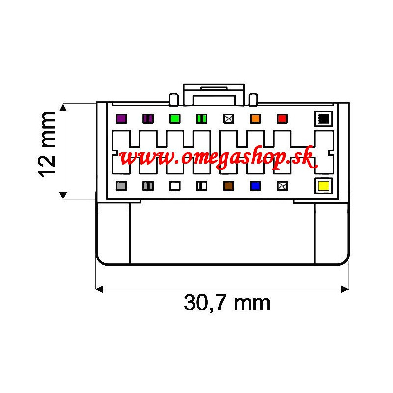 ► Rozmery: šírka 29 mm x výška 8 mm predných pinov (celkovo konektora 31,6 x 11,5mm)