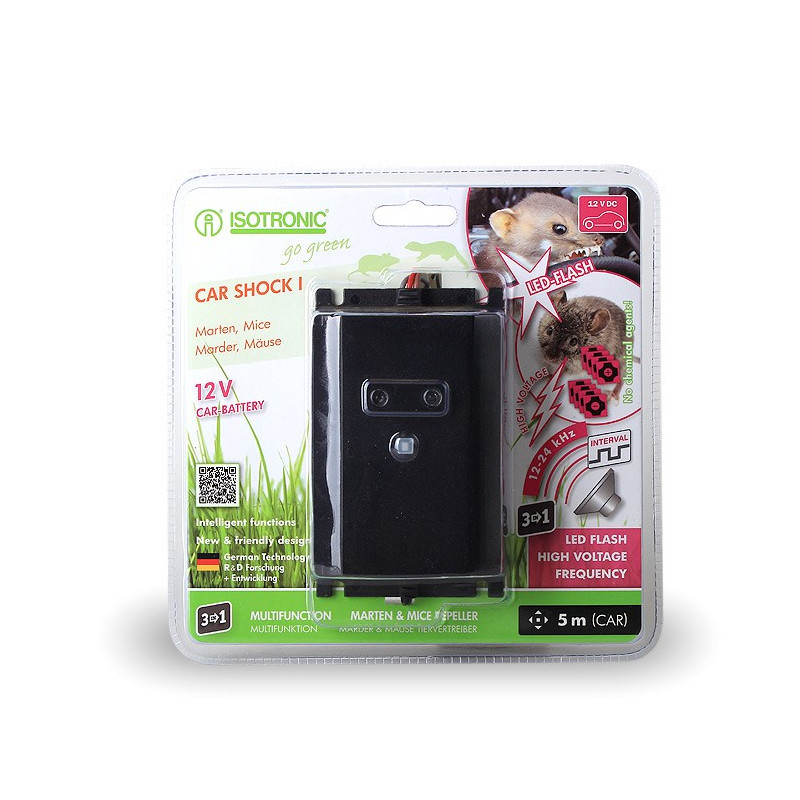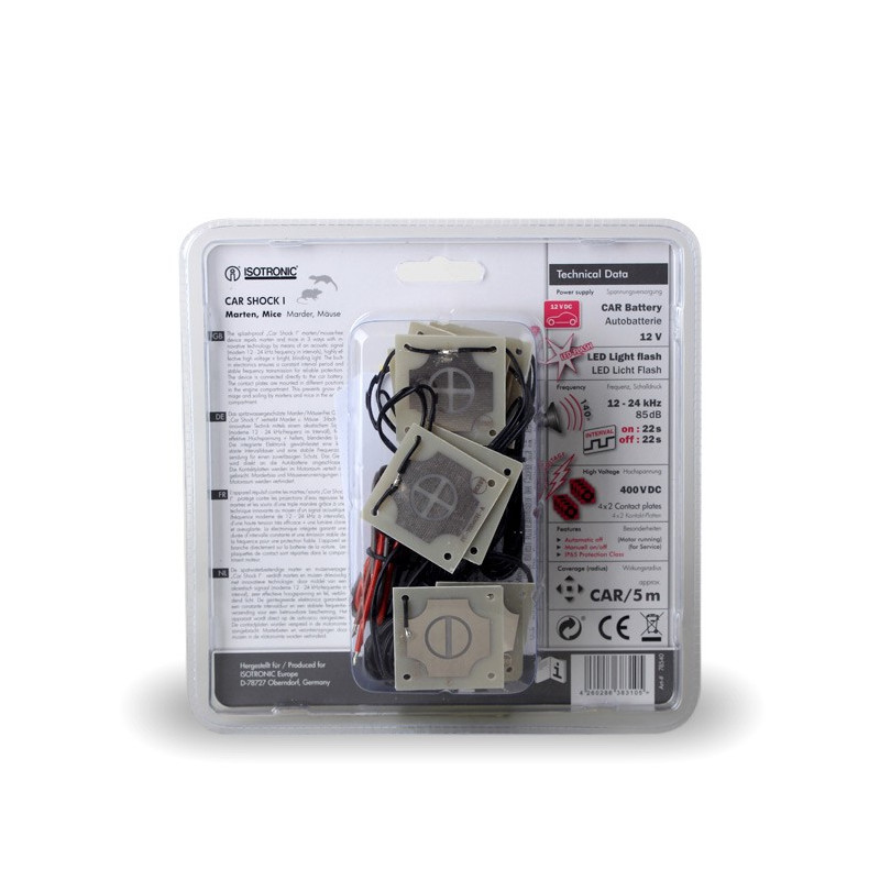 ► Zariadenie vysiela ultrazvukový signál s frekvenciou 22 kHz. Navyše obsahuje 6 vysokonapäťových plôch, ktoré sú kondenzátorom nabité na 300 voltov. Tieto vysokonapäťové platničky sa inštalujú pod kapotu do motorového priestoru na miesta pri vodné, vzduchové hadice, štartovacie káble a podobne. Pri dotyku s platničkou dostane zviera elektrický šok, ktorý ho okamžite odplaší. Vysokonapäťová platnička sa automaticku znovu nabije. Extrémne nízka spotreba energie (<0.005), pri poklese napätia batérie pod 11,5 V sa zariadenie automaticky vypne (aby sa pri dlhšej odstávke vozidla nevybila batéria úplne).