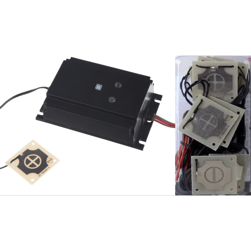 ► Vysokonapäťové platničky sa inštalujú pod kapotu do motorového priestoru na miesta pre vodné, vzduchové hadice, štartovacie káble a podobne. Pri dotyku s platničkou dostane zviera elektrický šok, ktorý ho okamžite odplaší - vysokonapäťová platnička sa automaticku znovu nabije.