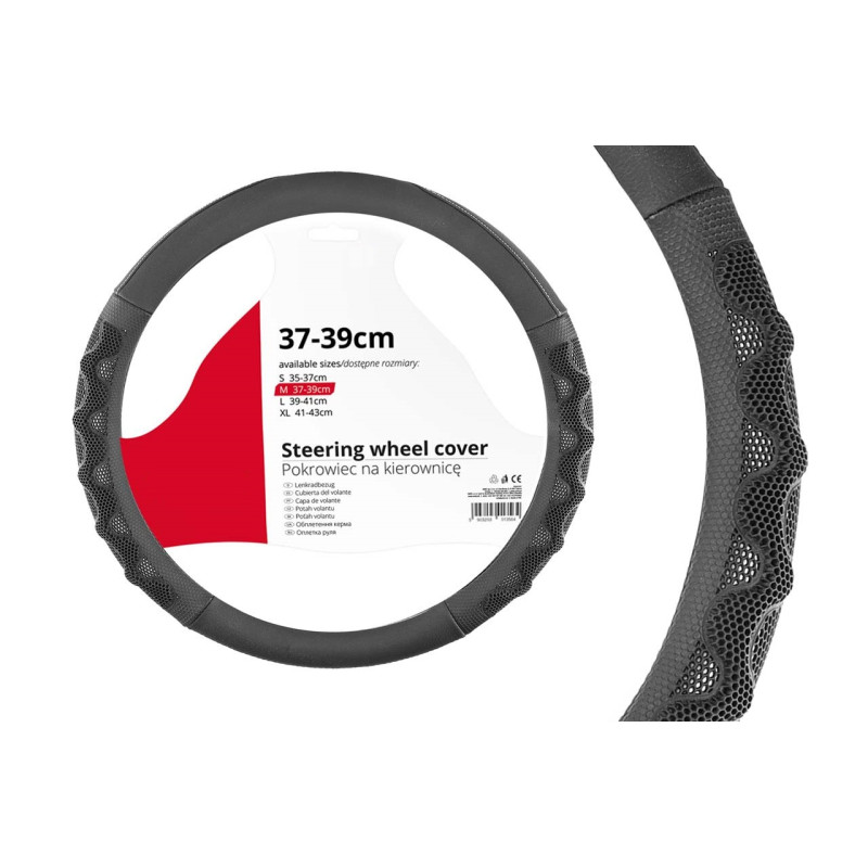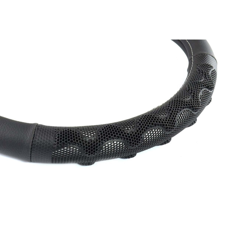 ► Poťah na volant pre univerzálne použitie na všetky typy volantov. Poťah na volant zlepšuje riadenie vozidla, zabraňuje šmýkaniu rúk po volante. Poťah volantu pri vysokých teplotách umožňuje príjemnejší kontakt rúk s volantom. Vďaka otvorenej vnútornej strane sa poťah jednoducho a rýchlo inštaluje, rozmer poťahu musí byť rovnaký ako priemer volantu