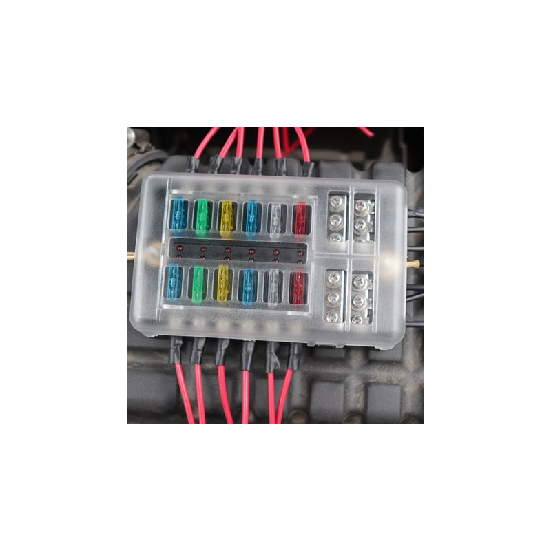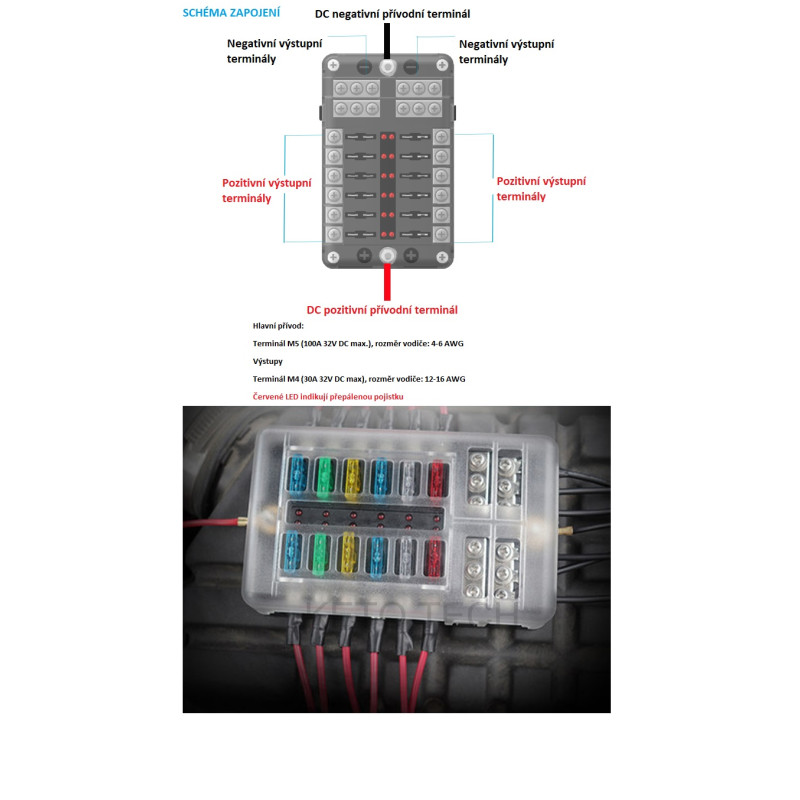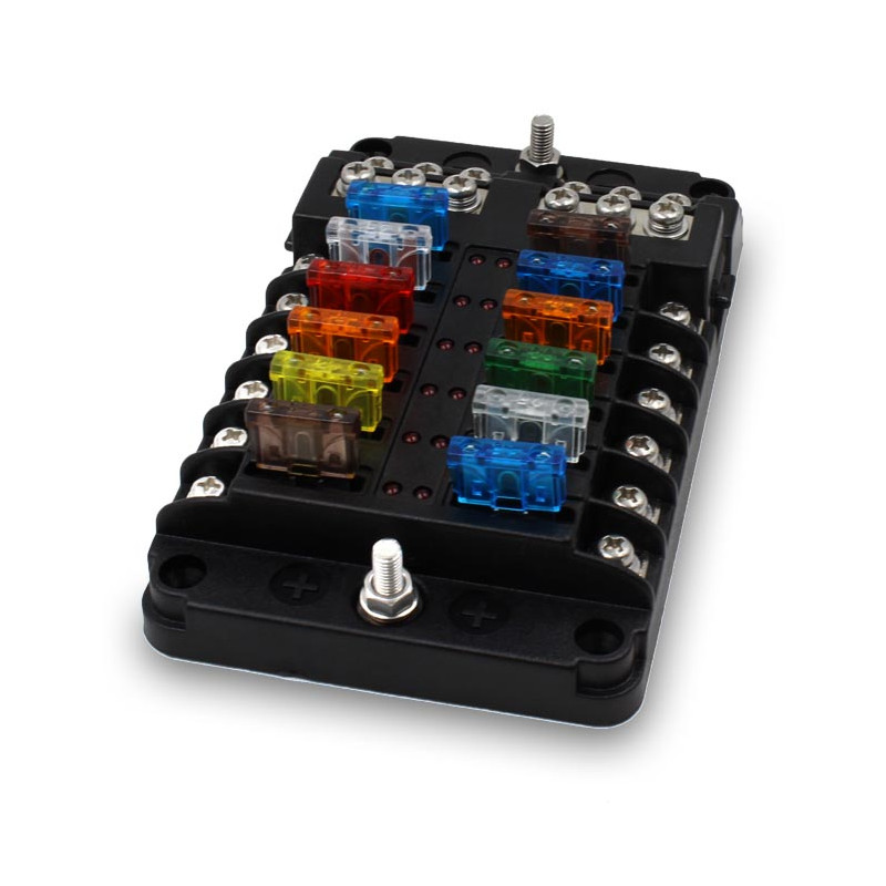 Tento všestranný pojistkový blok poskytuje pojistkové rozvody kladných pólů i rozvody záporných vodičů. To je zvláště praktické na lodi nebo karavanu, které nemusí mít systém typu ukostřené karoserie.