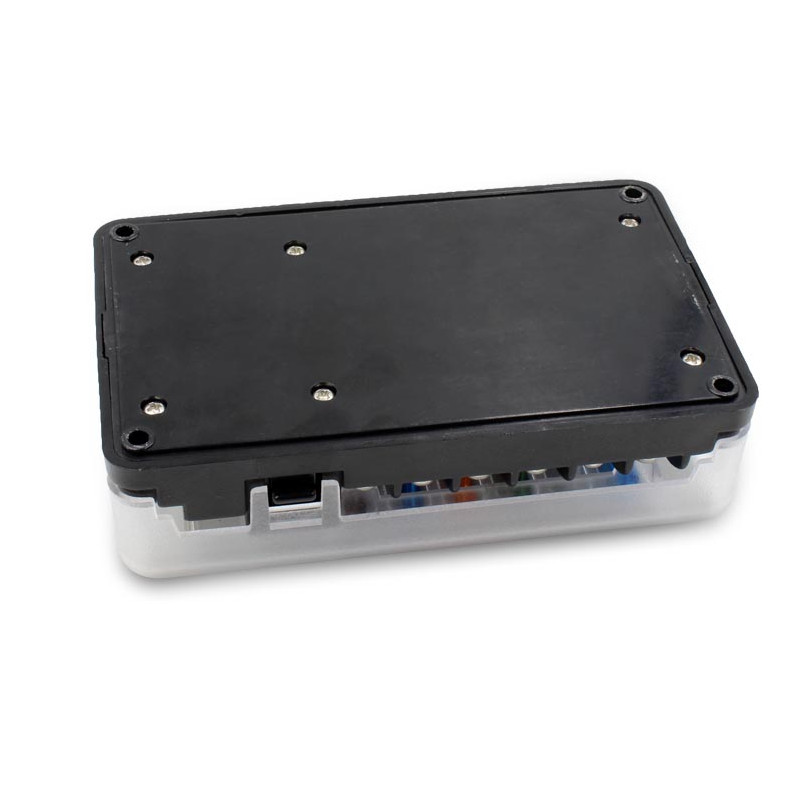 Pouzdro je vybaven uzamykatelným průhledným krytem, který chrání pojistky před náhodným zkratem.