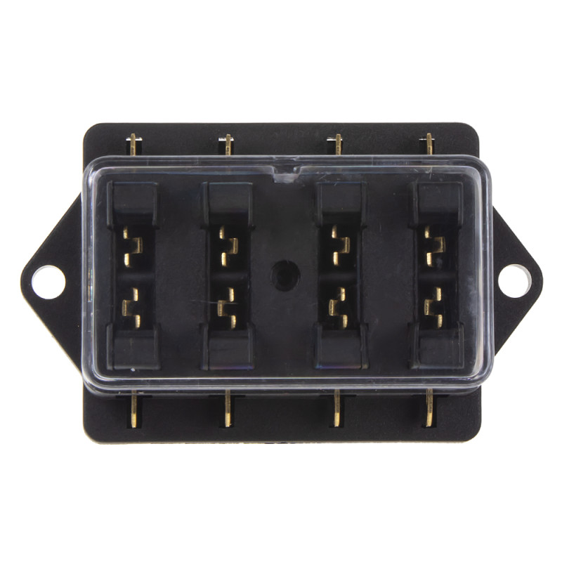 Tento všestranný pojistkový blok poskytuje pojistkové rozvody kladných pólů i rozvody záporných vodičů. To je zvláště praktické na lodi nebo karavanu, které nemusí mít systém typu ukostřené karoserie.
