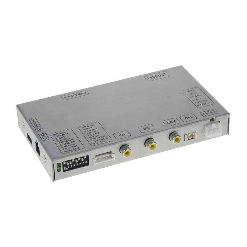 Modul pro připojení externího video signálu k OEM systému ve vozech Land Rover, Jaguar (2011-2016) s dotykovým displejem verze 3/3.1 . Modul disponuje třemi vstupy pro kompozitní video signál včetně zpětné kamery a jedním RGB vstupem. Modul je opatřen konektory pro napojení k monitoru vozidla a část se instaluje přímo do monitoru vozidla - nutno rozebrat! Přepínání vstupů modulu se provádí originálními tlačítky ve voze.