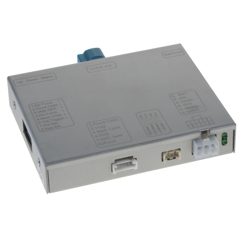 Modul disponuje třemi vstupy pro kompozitní video signál včetně zpětné kamery. Připojuje se přímo do navigačního systému. Zdroj video signálu připojený přes modul funguje i za jízdy.