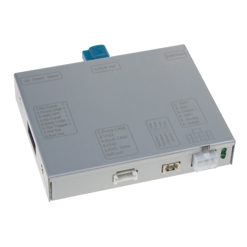 Adaptér umožňuje připojit zadní kameru, přední kameru s automatickým přepínáním a dva další zdroje videa (např. USB přehrávač, DVB-T2 tuner, ...) do továrního infotainment systému vozidla .