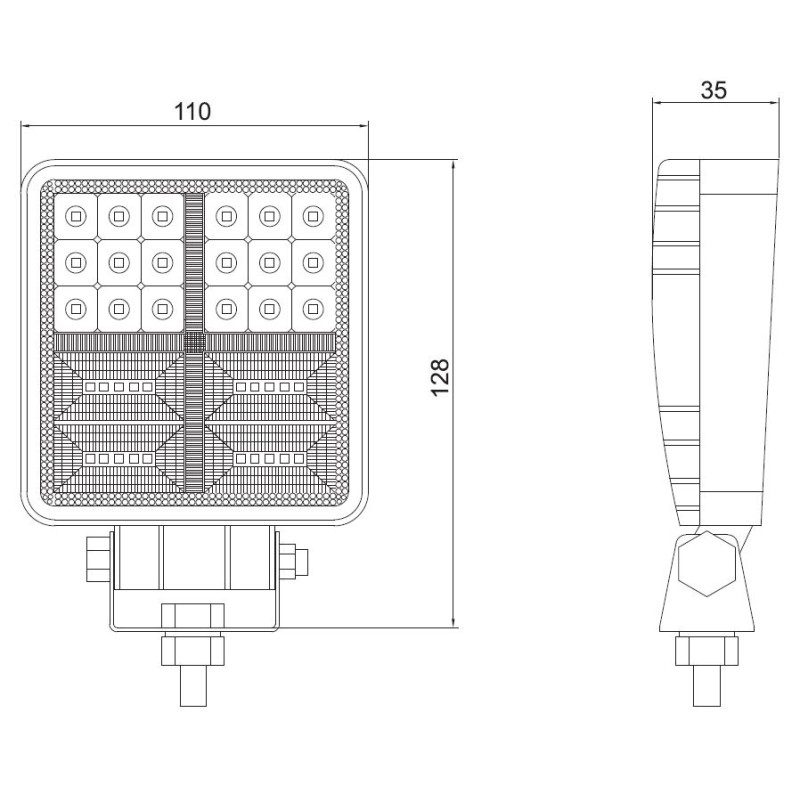 ► 18 W (6 ks 3W SMD LED čip) svetlo na pracovné stroje, vhodné najmä pre nákladné automobily, bagre, nakladače, offroad vozy a inú pracovnú techniku► Farba svetla: 6000-6500 K► Veľmi odolný hliníkový obal v čiernej farbe► Svetelný tok: 956 lm► Napájacie napätie: 12-24 VDC► IP: 67► Rozmery: 96x75x75mm► Uchytenie na skrutku