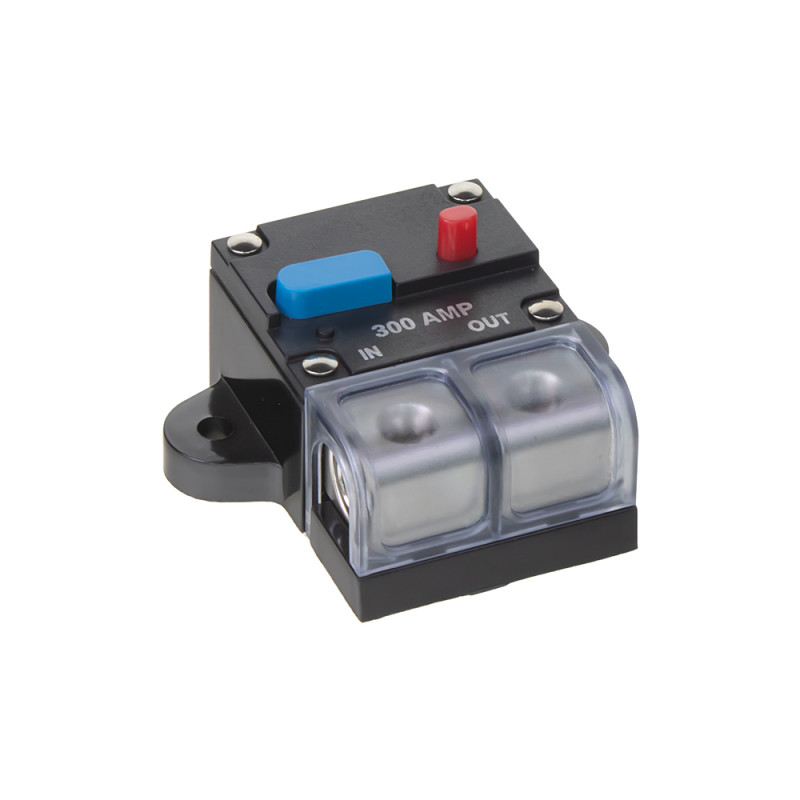 Jistič nízkonapěťových napájecích obvodů s bezpečnostním spínačem 300 A.