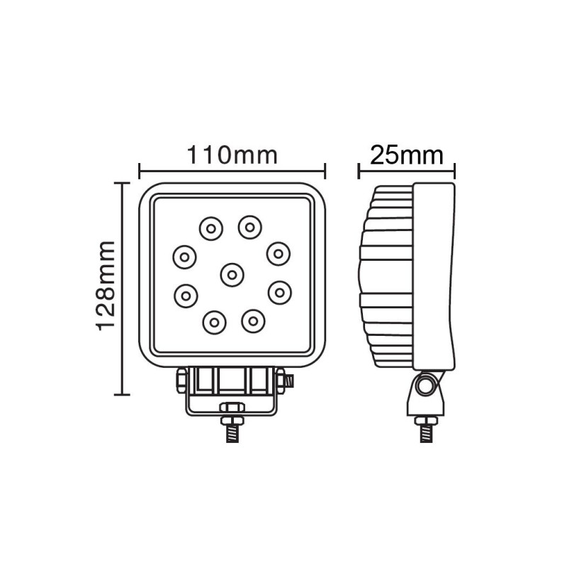 27 W (9ks 3 W LED čip) kulaté profesionální LED světlo s pozičním světlem na pracovní stroje, vhodné zejména pro nákladní automobily, bagry, nakladače, offroad vozy a jinou pracovní techniku.