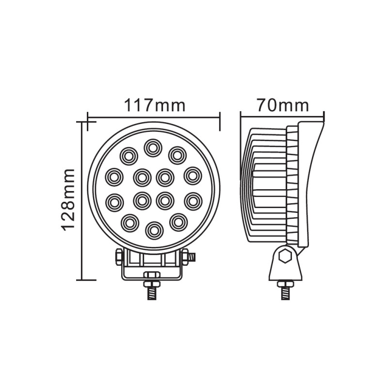 42 W (Cree LED čip) obdélníkové profesionální LED světlo na pracovní stroje, vhodné zejména pro nákladní automobily, bagry, nakladače, offroad vozy a jinou pracovní techniku.