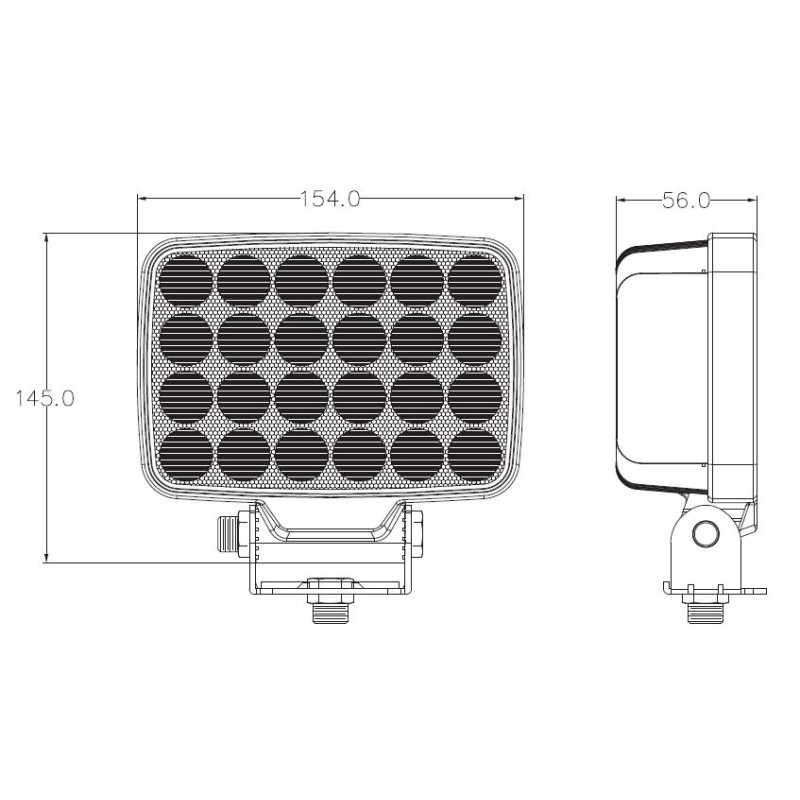 Vysoce výkonné nástěnné světlo, určené pro povrchovou montáž na stranu vozidla, především na různé pracovní stroje, sanitky, hasiče, zásahová vozidla, obytné automobily a karavany.