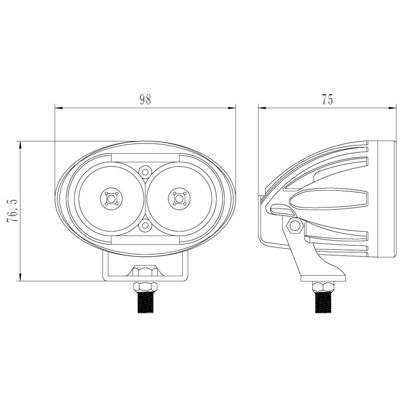 Světlo je určeno pro přímé upevnění pomocí držáku a je vybaveno vypínačem na zadní straně.