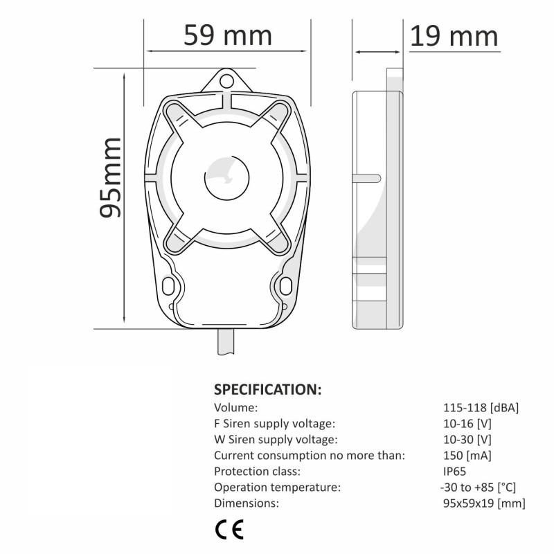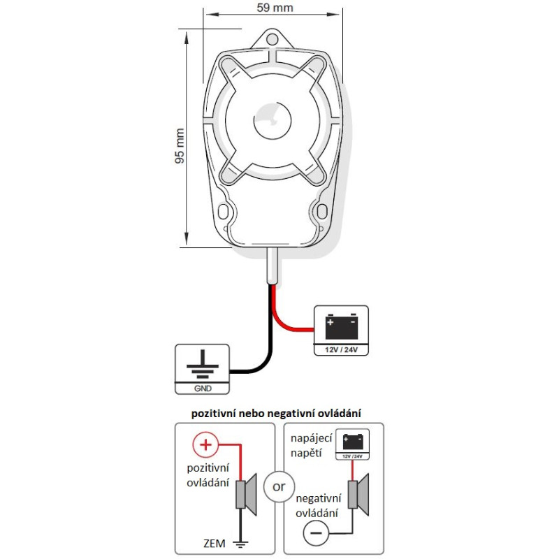 Elektronický obvod sirény je hermeticky uzavřený a odolný vlhkosti.