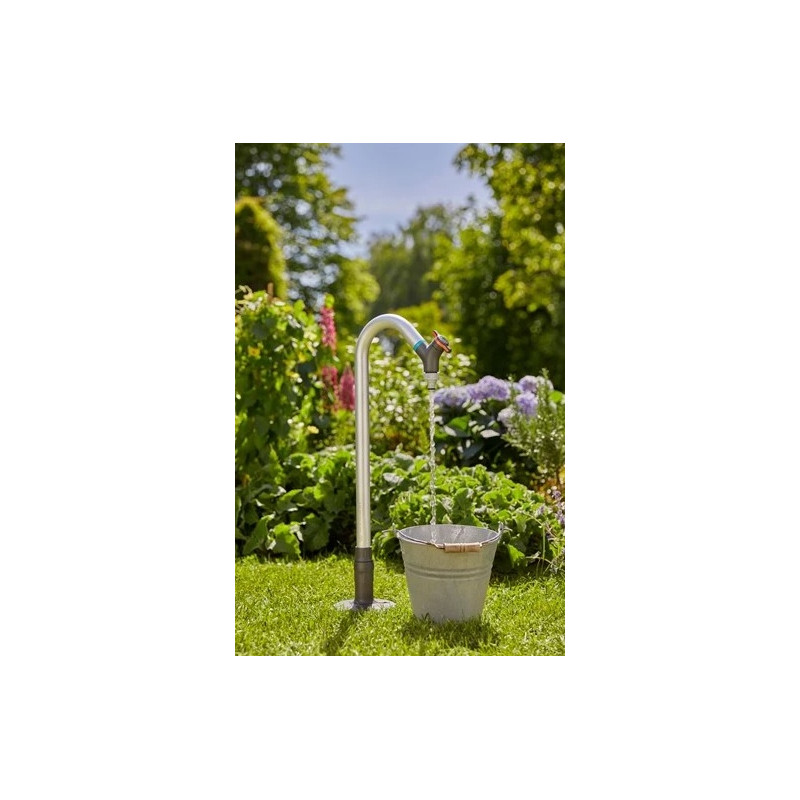 ► Záhradný vodovodný kohútik značky GARDENA pridáva do vášho systému Pipeline praktický vodovodný kohútik. Vonkajší vodovodný kohútik nainštalujete bez ďalších nástrojov na vodnú zásuvku Pipeline v niekoľkých jednoduchých krokoch a je okamžite pripravený na použitie. Obsluha je jednoduchá a ponúka vám praktické funkcie. Začína to pohodlnou výškou vodovodného kohútika, čo uľahčuje jeho používanie. Vodovodný kohútik môžete flexibilne otáčať vo všetkých smeroch a pomocou regulačného ventilu nastaviť prietok vody. Vypnutie vody je možné pomocou ventilu. Vďaka funkcii Anti-Splash sa vedierka a kanvy plnia bez rozstrekovania vody, aj v prípade, že ste nepripojili hadicu. Na výrobu záhradného vodovodného kohútika boli použité veľmi kvalitné a trvanlivé materiály. Rúrka je vyrobená z hliníka, vďaka čomu je kohútik veľmi pevný. Vysoká kvalita výrobkov je zaručená ich výrobou v Nemecku. Voda všade tam, kde je potrebná. Jednoduchý prístup k vode: potrubie vedené pod zemou