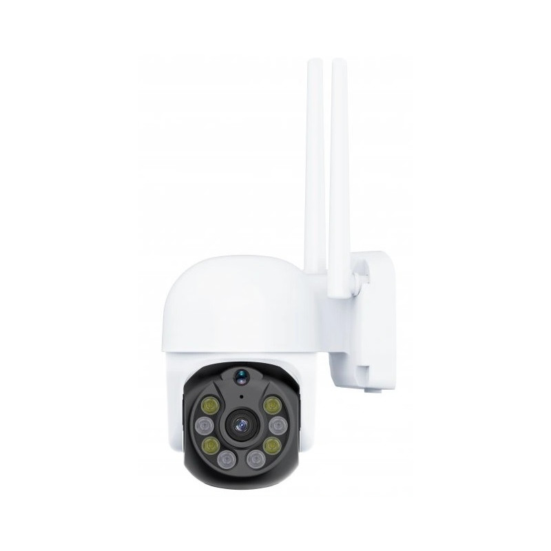 ► IP kamera – vnútorná a vonkajšia, s maximálnym rozlíšením videa 2304 × 1296 px, hybridné nočné videnie s maximálnym dosvitom 50 m, 95° zorný uhol, motorická rotácia, pevný objektív, s detekciou pohybu, zvuku, postáv a rozpoznania automobilov, vstavaný mikrofón a vstavaný reproduktor, notifikácie do mobilu, svetelný a zvukový alarm, SD a cloud úložisko, RJ 45 LAN rozhranie, pripojenie cez WiFi 2,4 GHz, napájanie do siete, na komunikáciu slúži Aplikácia výrobcu, rozmery 159,4 × 119,1 × 210 mm (V׊×H)