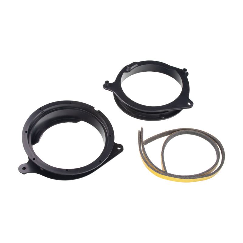 Plastový adaptér slouží pro montáž zadních reproduktorů s atypickým rozměrem 120 mm nebo 130 mm (pro speciální kulaté reproduktory bez uší).