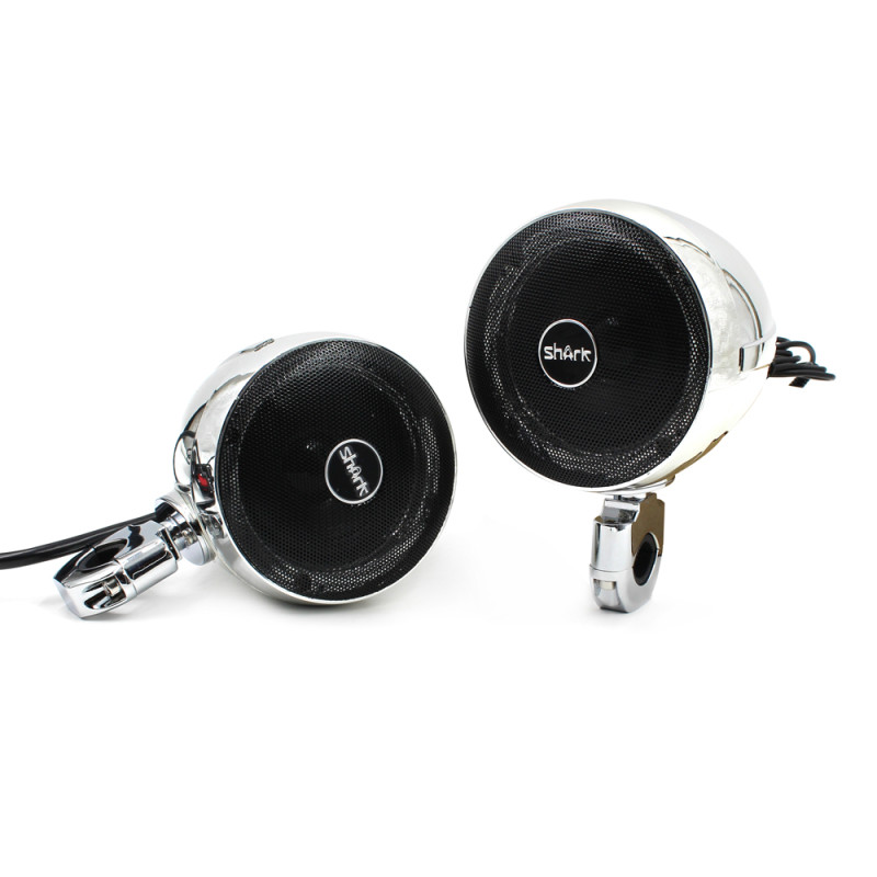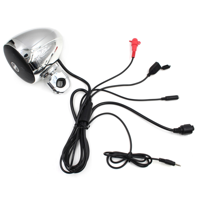 Zvukový systém s reproduktory pro vychutnání si poslechu hudby během jízdy na motocyklu, skútru či čtyřkolce, s možností přehrávání z USB, Bluetooth nebo FM tuner.