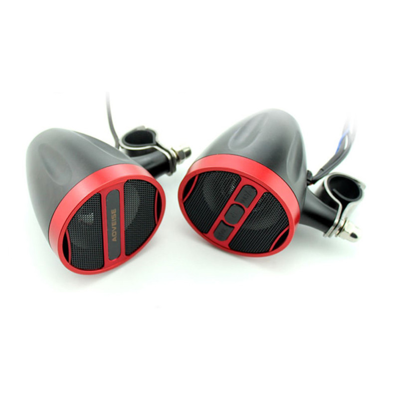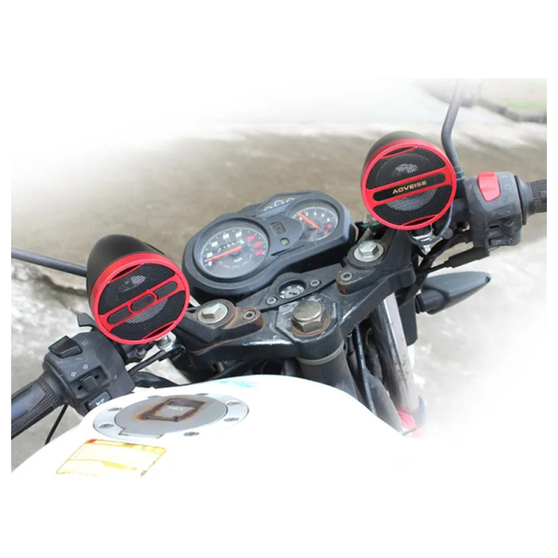 Zvukový systém s reproduktory pro vychutnání si poslechu hudby během jízdy na motocyklu, skútru či čtyřkolce, s možností přehrávání z USB, Bluetooth nebo FM tuner.