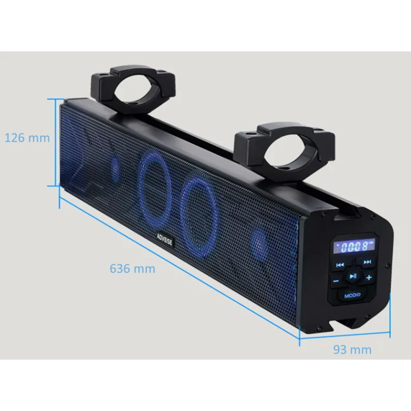 25" zvukový systém speciálně vyvinuté pro ATV / UTV / golfový vozík / loď s reproduktory pro vychutnání si poslechu hudby během jízdy s možností přehrávání z USB, Bluetooth nebo AUX vstupu.
