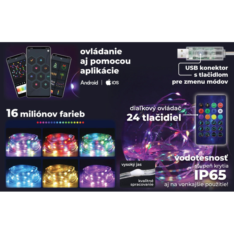 ► Smart LED pás s dĺžkou 10 metrov a 100 svetiel