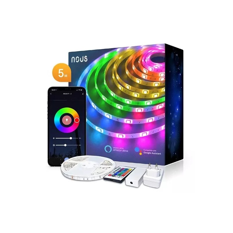 Inteligentný LED pásik Nous F4 sa ovláda aplikáciou Nous Smart Home, ktorá je k dispozícii pre operačné systémy Android alebo iOS, prostredníctvom ktorej môžete odkiaľkoľvek ľahko meniť jas a farbu podľa vášho vkusu a nálady. LED pásik je možné použiť na osvetlenie interiéru tak aj exteriéru, pretože je vodeodolný podľa IP44.Vlastnosti:- RGB 16 miliónov farieb- Kompatibilita Nous Smart Home- Príkon: 18W- Zvukové efekty, časovač, synchronizácia hudby- Index podania farieb (Ra): ≥ 80- Životnosť: 25000h- Rozsah prevádzkového napätia: 220-240V~50/60Hz- Stupeň ochrany proti vlhkosti: IP44- Typ LED: SMD 5050 LED- Možnosť orezania každých 10 cm- Šírka pásky: 10 mm- Dĺžka pásu: 5m- Typ bezdrôtového prenosu: Wi-Fi 2,4GHz- Kompatibilita s hlasovými asistentmi Alexa, Google Assistant- Spotreba: 24V/0,75A