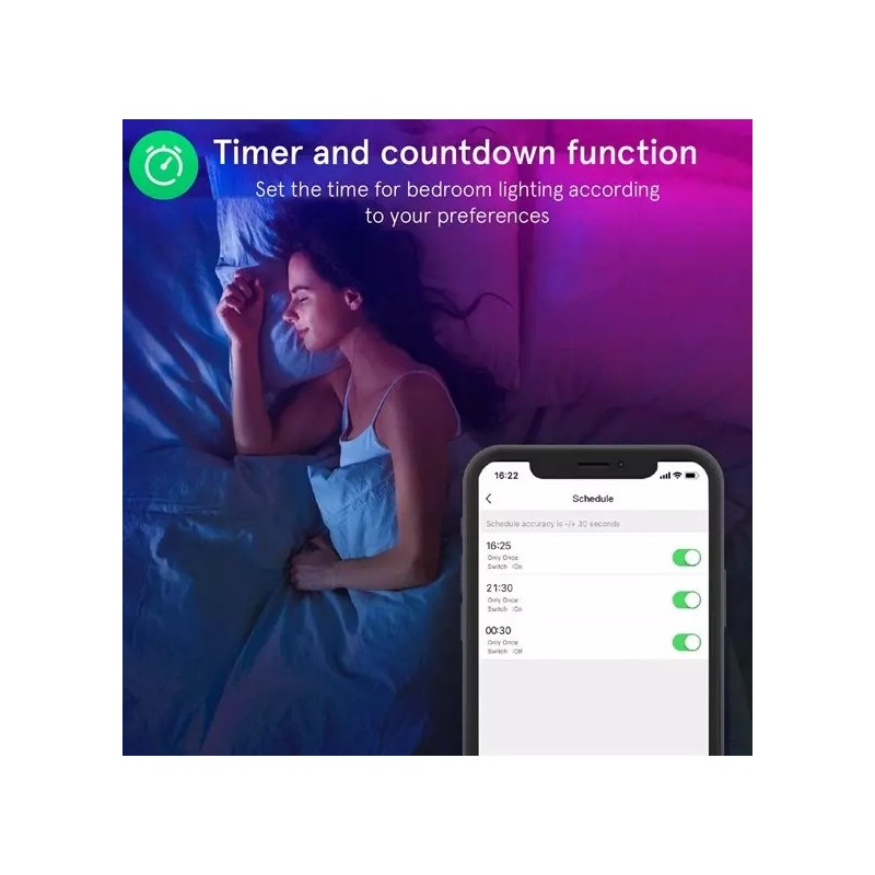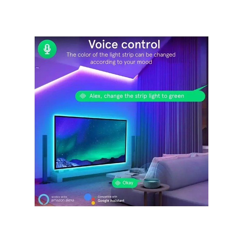► - RGB 16 miliónov farieb- Kompatibilita Nous Smart Home- Príkon: 36W- Zvukové efekty, časovač, synchronizácia hudby- Index podania farieb (Ra): ≥ 80- Životnosť: 25000h- Rozsah prevádzkového napätia: 220-240V~50/60Hz- Stupeň ochrany proti vlhkosti: IP44- Typ LED: SMD 5050 LED- Možnosť orezania každých 16,5 cm- Šírka pásky: 10 mm- Dĺžka pásu: 10m- Typ bezdrôtového prenosu: Wi-Fi 2,4GHz- Kompatibilita s hlasovými asistentmi Alexa, Google Assistant
