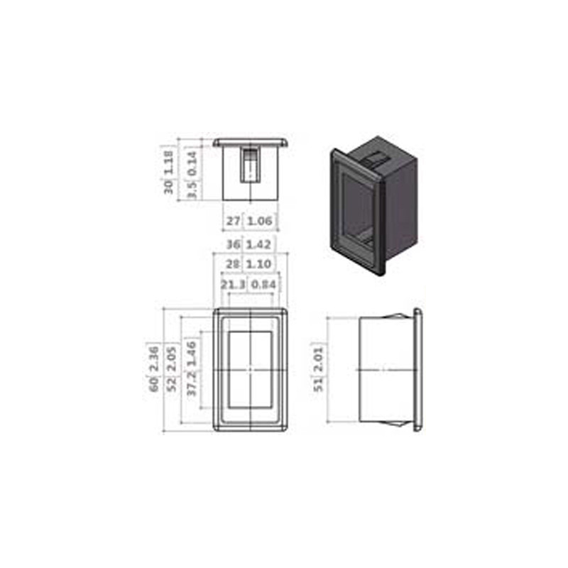 • rozměr montážního otvoru: 37 mm x 22 mm
