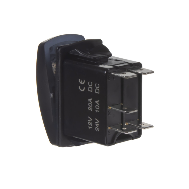 Spínač ROCKER kolébkový hranatý bez podsvětlení, pro napájecí napětí 12 V / 20 A - 24 V / 10 A, rozměr otvoru 37 x 21 mm.