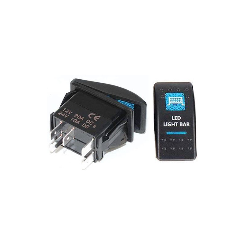 ► Spínač ROCKER kolískový hranatý s modrým podsvieteným symbolom svetelnej rampy a LED LIGHT BAR