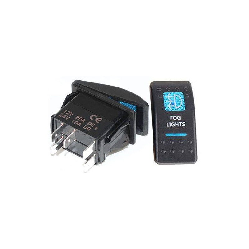 ► Spínač ROCKER kolískový hranatý s modrým podsvieteným symbolom hmlových svetiel a nápisom FOG LIGHTS