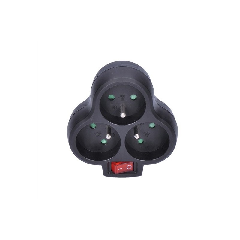 ► Rozbočovacia zásuvka 3 x (2x okrúhla 250 V~/10 A max.+ 1 x plochá - 250 V~/2,5 A max.)
