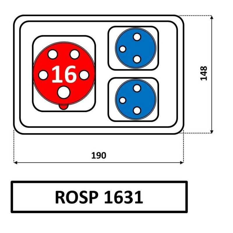► Zásuvková rozvodnica istená 1xIEN 3253+1xIEN1653+2x230V - ROS-I 1603