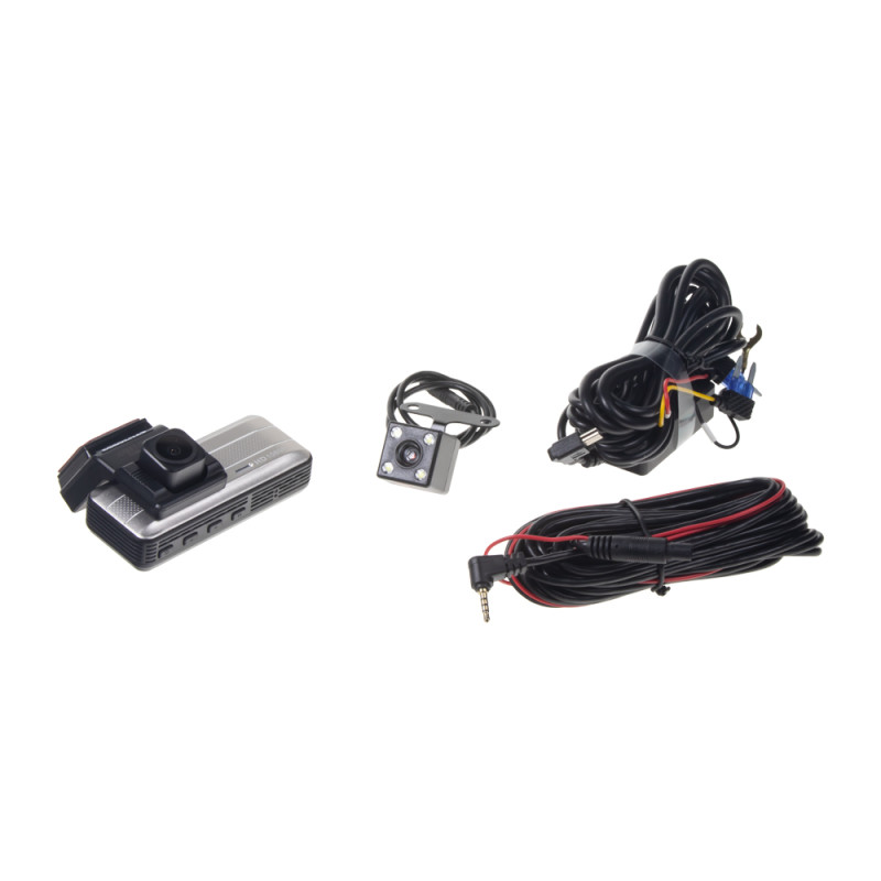 Obsah balení: kamera, magnetický držák na sklo, zadní kamera s kabeláží 5,3m, autonabíječka 12 / 24 V