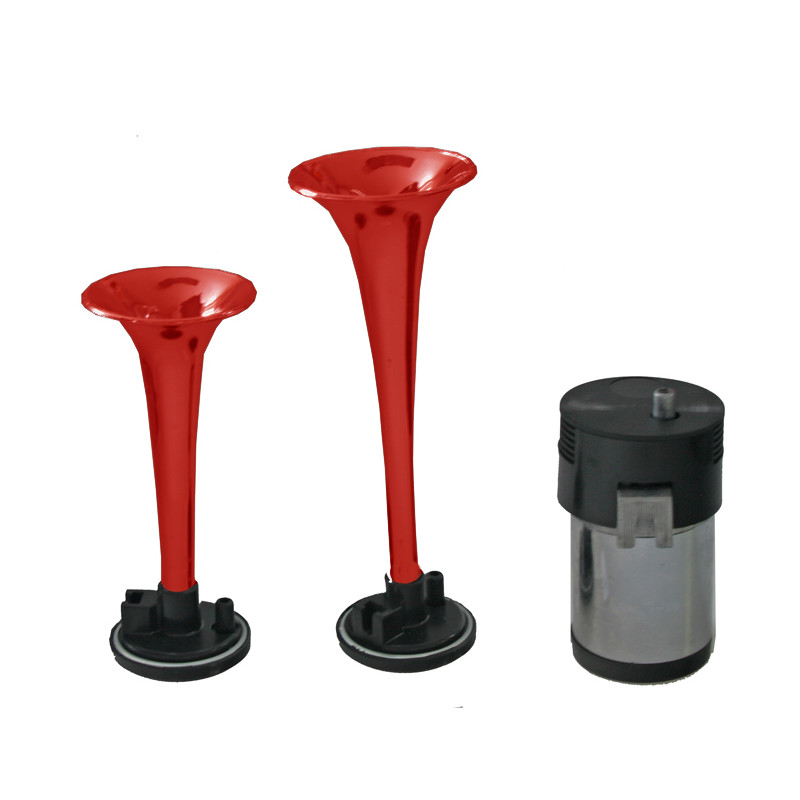 2-trubková fanfára poháněná vzduchovým kompresorem dodávaným v sadě.Trubky jsou vyrobeny z pochromovaného ABS plastu. Kompresor je spojen pevně s trubkami