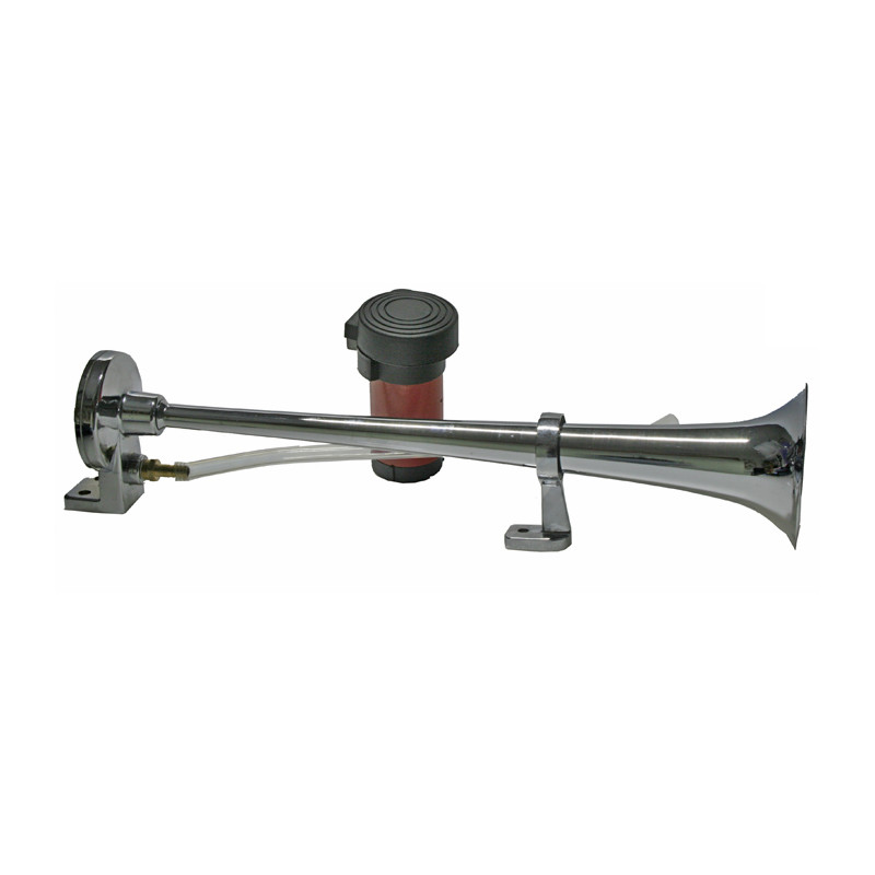 Fanfára poháněná vzduchovým kompresorem dodávaným v sadě.Trubka je vyrobena z velice odolné zinkové slitiny a povrch je pochromován. Je vhodná pro pohledovou montáž na karoserii vozu nebo do náročnějších klimatických podmínek. V sadě je dodávána také hadice a drobný montážní materiál.