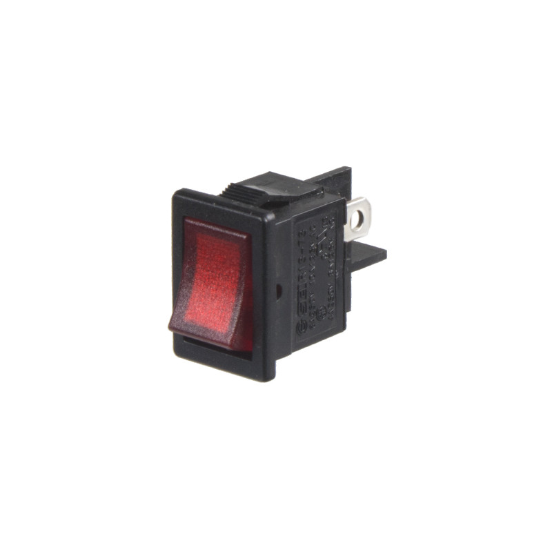 Spínač kolébkový hranatý voděodolný 20 A červený s podsvícením, napájecí napětí 12V, do otvoru 10 x 29 mm.