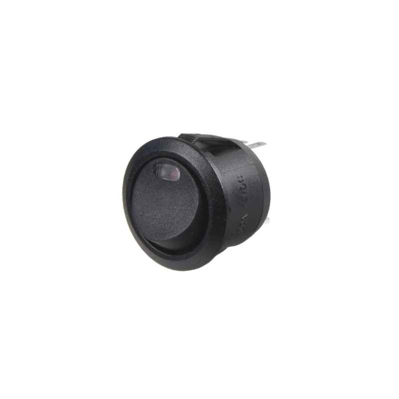 Spínač kolébkový kulatý 20 A červená LED kontrolka, průměr otvoru 20,2 mm, pro napájecí napětí 12 V.