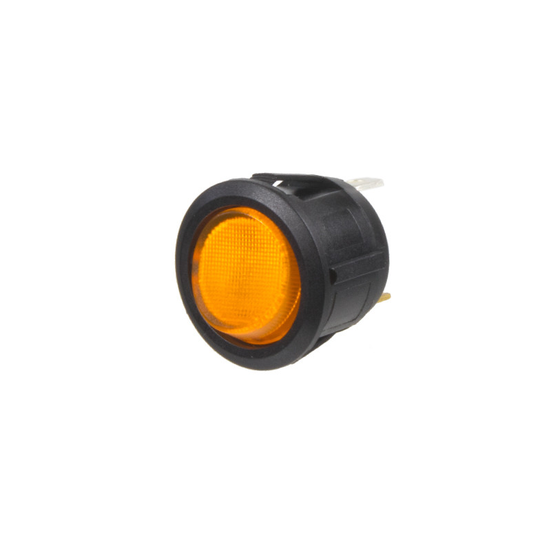 Spínač kolébkový kulatý 20 A oranžová LED kontrolka, průměr otvoru 20,2 mm, pro napájecí napětí 12 V.