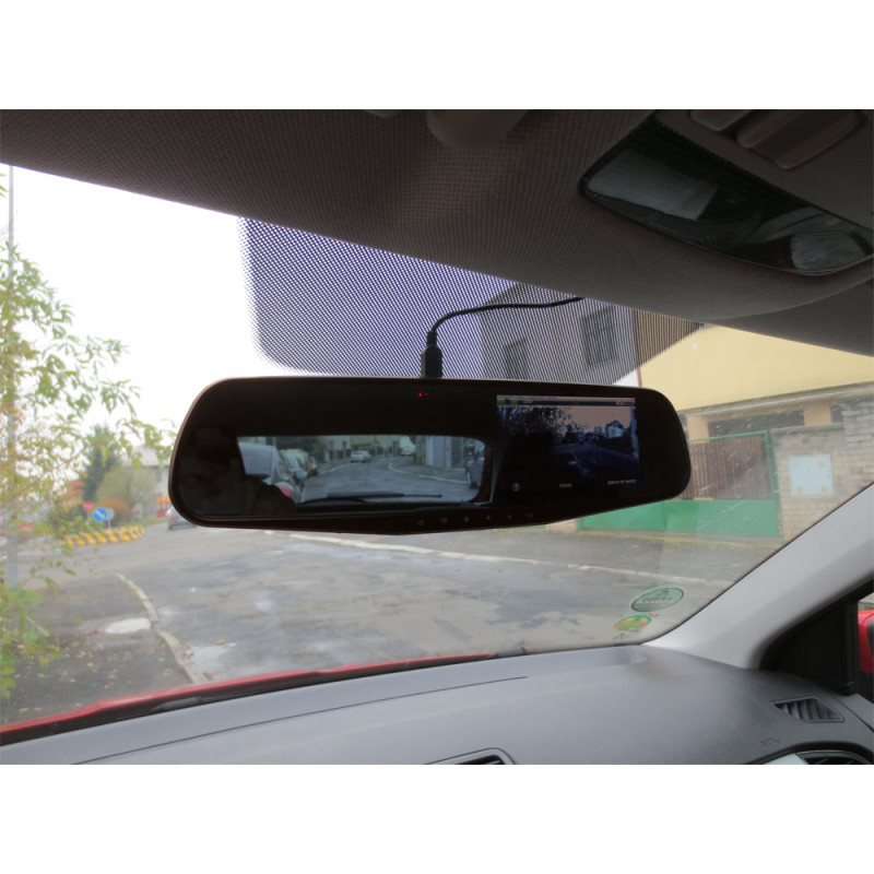2 kanálová kamera s velmi vysokým rozlišení FULL HD integrovaná do zpětného zrcátka s mikrofonem, 4,3" LCD monitorem, video vstupem pro zadní kameru a záznamem obrazu a zvuku na micro SD kartu. Je vhodná zejména pro neustálé monitorování dopravní situace před vozidlem. Záznam lze použít při objasňování dopravních nehod!!! Kamera je vhodná i pro záznam sportovních automobilových aktivit, pro záznam akcí bezpečnostních složek apod. Velice jednoduché ovládání, indikace stavu LED diodou. Připojení k PC je pomocí USB konektoru. Možnost nastavení data a času, každý videozáznam obsahuje "časové razítko" v obraze. Záznam probíhá ve smyčce, tzn. že se automaticky přemazávají staré záznamy. Nahrávání začne automaticky po zapnutí kamery (připojení napájení). Následně je možné analyzovat data, najít příčiny, přehrávat scény. Výběr záznamu z jedné nebo obou kamer, zobrazení na displeji jedné nebo obou kamer, přepínání zobrazení velikosti obrazu z kamer