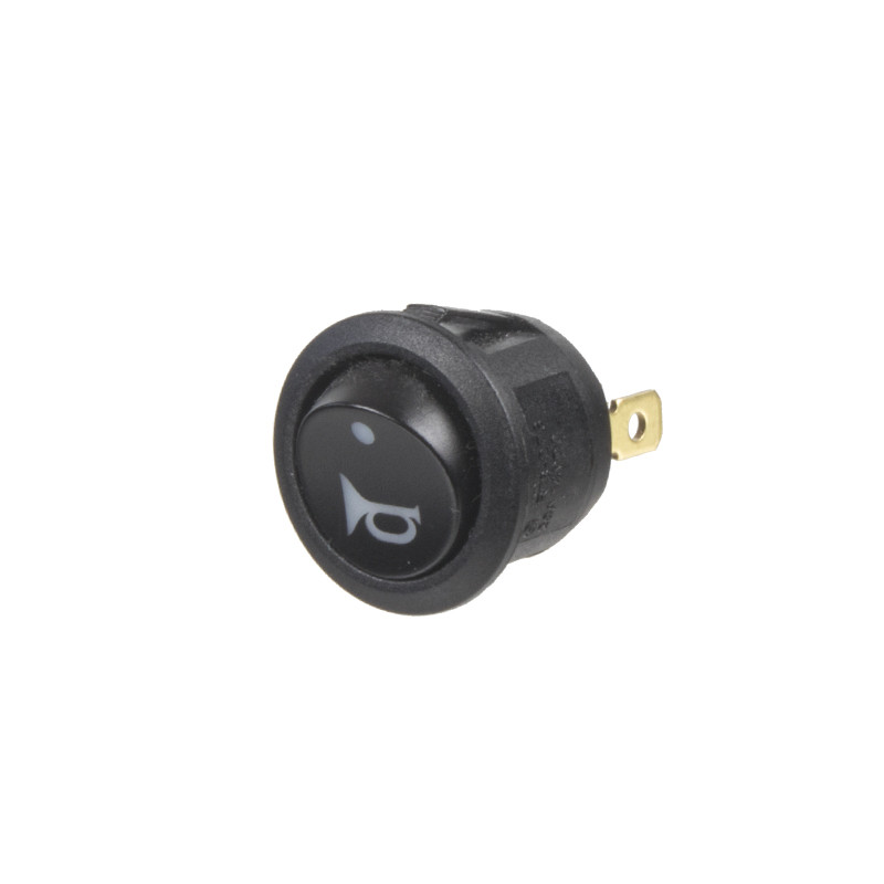 Spínač kolébkový kulatý 20 A s oranžově podsvíceným symbolem zadní mlhová světla a červenou kontrolkou, pro napájecí napětí 12 V / 20 A, průměr otvoru 20,2 mm.