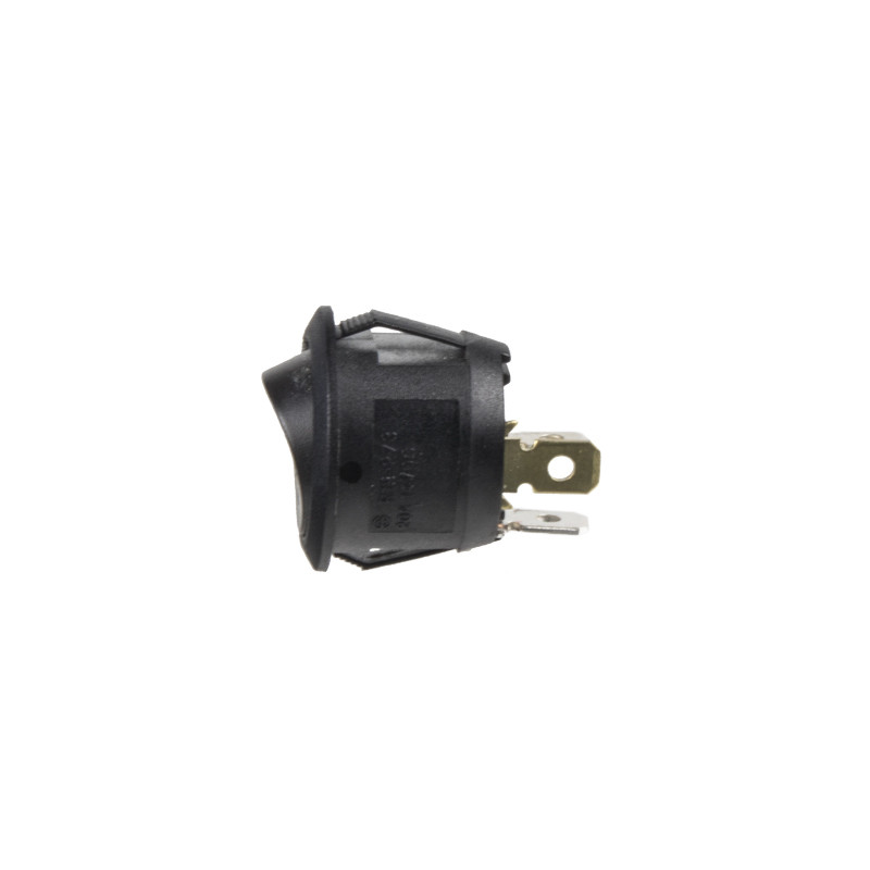 Spínač kolébkový kulatý 20 A s oranžově podsvíceným symbolem žárovky a červenou kontrolkou, pro napájecí napětí 12 V / 20 A, průměr otvoru 20,2 mm.