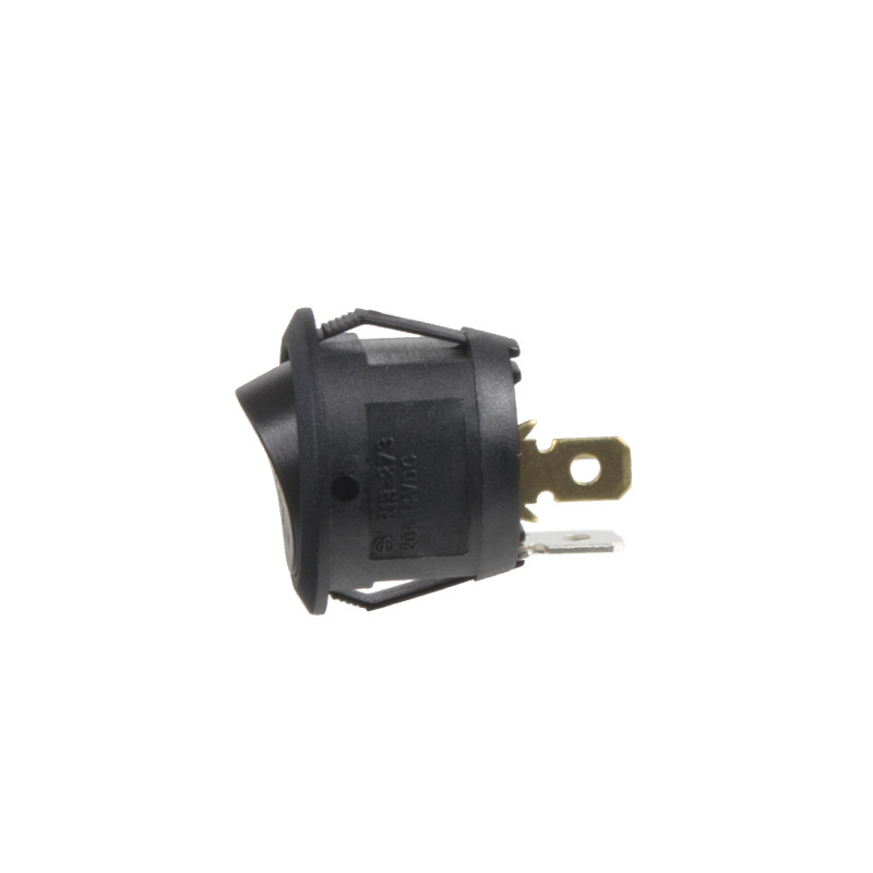 Spínač kolébkový kulatý 20 A se zeleně podsvíceným symbolem světel a červenou kontrolkou, pro napájecí napětí 12 V / 20 A, průměr otvoru 20,2 mm.