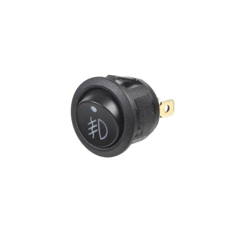 Spínač kolébkový kulatý 20 A s oranžově podsvíceným symbolem zadní mlhová světla a červenou kontrolkou, pro napájecí napětí 12 V / 20 A, průměr otvoru 20,2 mm.