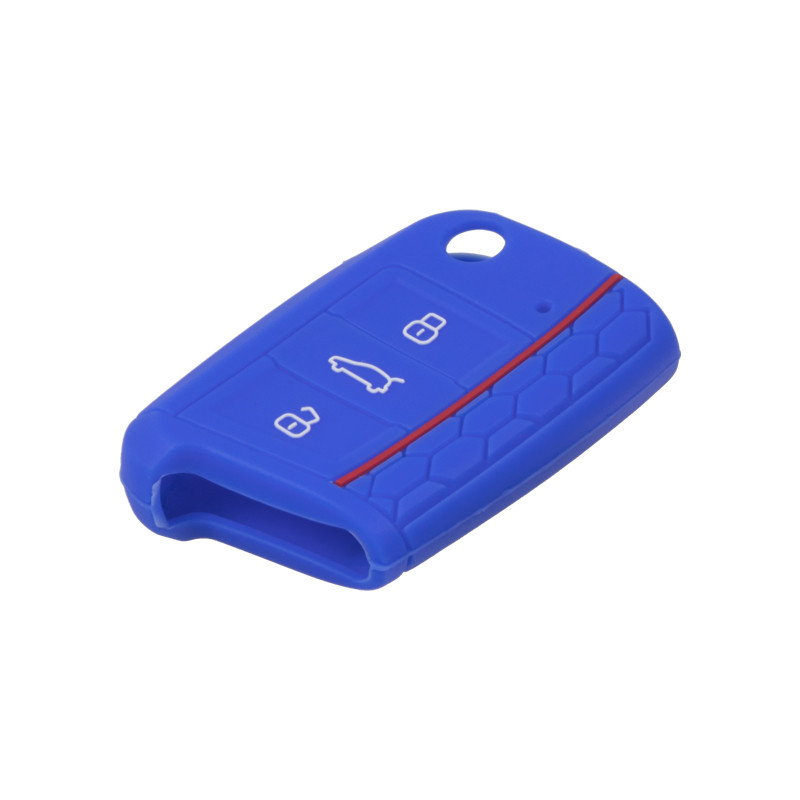 Modrý silikonový obal pro autoklíč Škoda, VW, Seat. Chrání klíč před pádem, znečištěním a oprotřebením (vhodné pro služební vozidla). Barevně osvěží váš stávající klíč, barvami také můžete oddělit různé uživatele, popř. automobily.