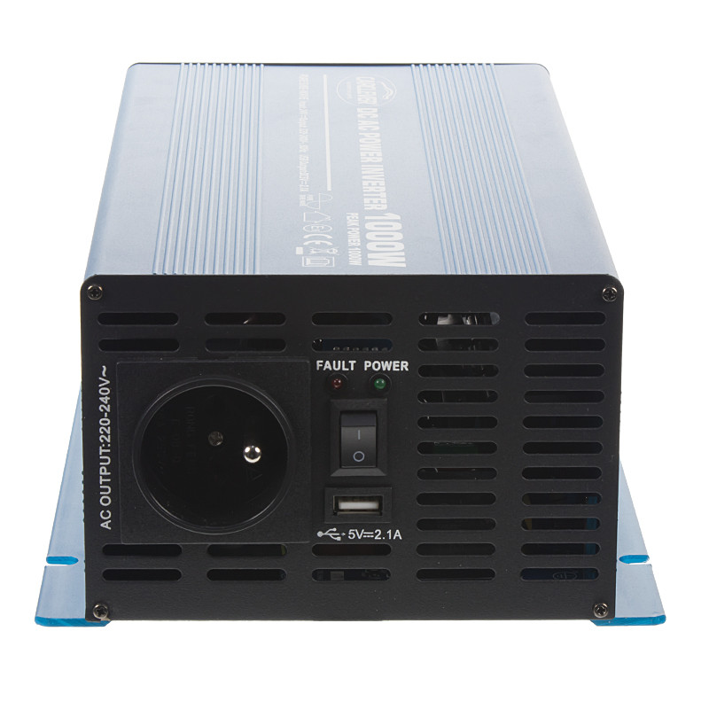 Sinusový měnič vhodný pro napájení všech druhů spotřebičů s odporovou zátěží i pro spotřebiče s indukční zátěží jako jsou motory, čerpadla, ledničky, zářivky atd. Dále je tento měnič vhodný pro spolehlivé a bezpečné napájení televizorů, DVD, počítačů, tiskáren, měřících přístrojů a jiných el. spotřebičů. Měnič je navíc vybaven USB zásuvkou pro napájení USB spotřebičů 5 V.