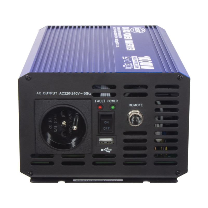 Sinusový měnič vhodný pro napájení všech druhů spotřebičů s odporovou zátěží i pro spotřebiče s indukční zátěží jako jsou motory, čerpadla, ledničky, zářivky atd. Dále je tento měnič vhodný pro spolehlivé a bezpečné napájení televizorů, DVD, počítačů, tiskáren, měřících přístrojů a jiných el. spotřebičů. Měnič je navíc vybaven USB zásuvkou pro napájení USB spotřebičů 5 V.