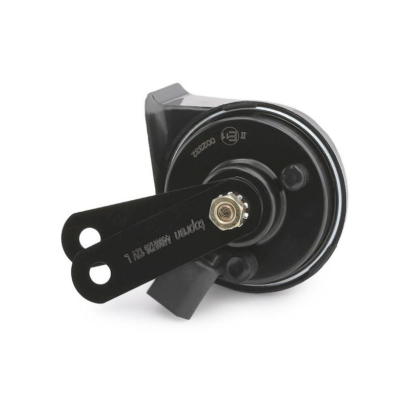 2 elektromagnetické turbínové klaksóny so šnekovým zvukovodom a čiernym plastovým krytom► Súzvuk oboch klaksónov s rôznymi tónmi (vysoký a nízky) sa vyznačuje veľmi ostrým a výrazným prejavom► Napájacie napätie: 12V DC► Spotreba: 4 A► Úroveň hluku: 100 - 115 dB► Priemer klaksónov: cca 90 mm► Hrúbka: cca 76 mm► Frekvencia tónu: nízky 410 Hz, vysoký 510 Hz► Farba: čierna