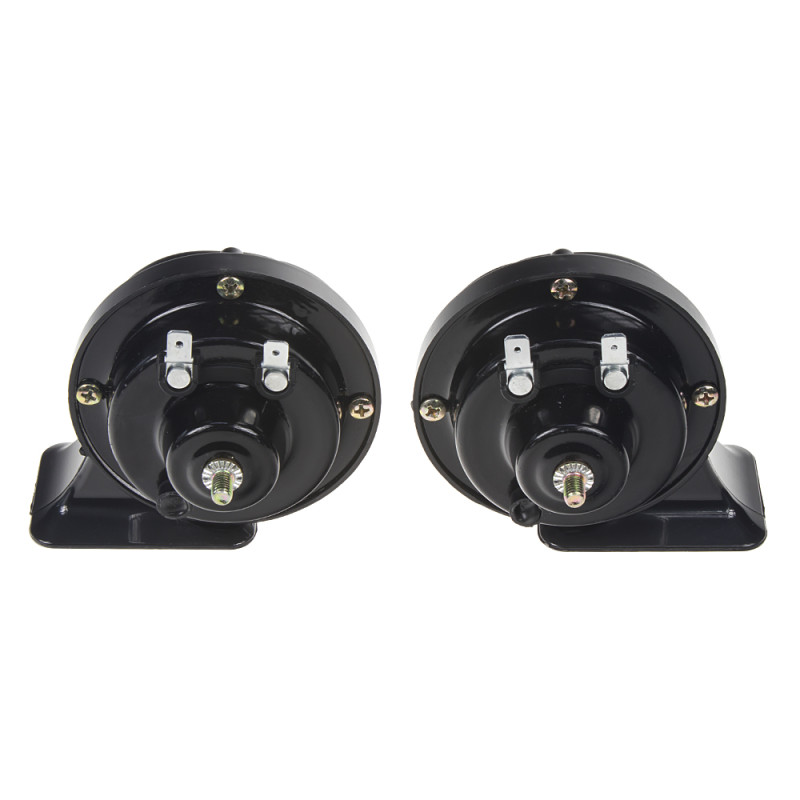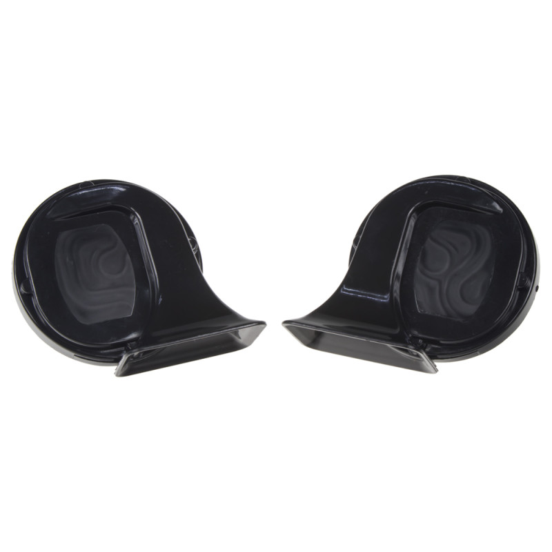 2 elektromagnetické turbínové klaksóny so šnekovým zvukovodom a čiernym plastovým krytom► Súzvuk oboch klaksónov s rôznymi tónmi (vysoký a nízky) sa vyznačuje veľmi ostrým a výrazným prejavom► Napájacie napätie: 12V DC► Spotreba: 4 A► Úroveň hluku: 100 - 115 dB► Priemer klaksónov: cca 90 mm► Hrúbka: cca 76 mm► Frekvencia tónu: nízky 410 Hz, vysoký 510 Hz► Farba: čierna
