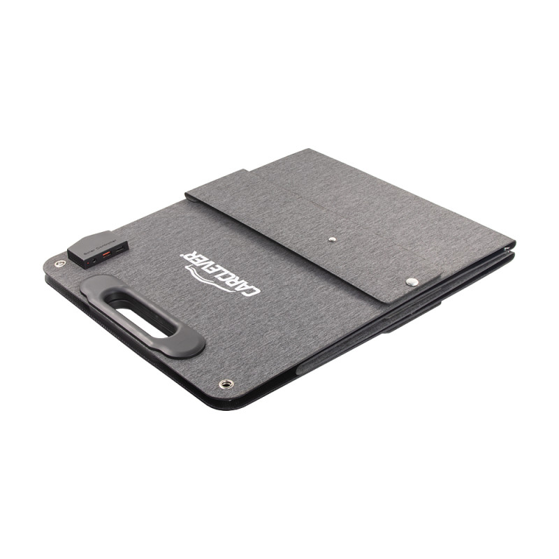 Skládací solární panel se spevněnou konstrukcí (plná laminace) je určený pro nabíjení 12V baterií, bateriových nabíjecích stanic, notebooků, mobilních telefonů, powerbank a jiných zařízení s USB konektorem.
