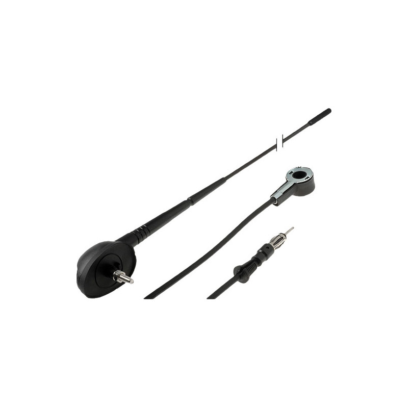 ► Strešná autoanténa na zadnú časť strechy so zabudovaným zosilňovačom napájaným pomocou fantómového napájania cez prívodný koaxiálny anténny kábel► Uhol sklonu: 60°► Odnímateľný prút► Dĺžka prutu: 40 cm► Kábel: cca 10 cm► Konektor antény: RAKU2► Rozmery základnej časti: 6x4,3cm► Inštalácia do okrúhleho otvoru (Ø19mm), alebo štvorcového otvoru (15x15mm)